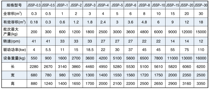 | ◆JSSP型系列螺带式混合机技术参数 |