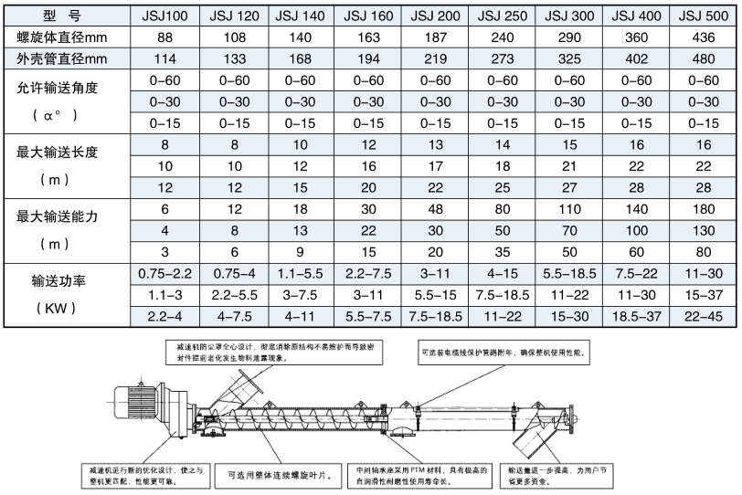 | ◆JSJ型管式螺旋输送机技术参数 |