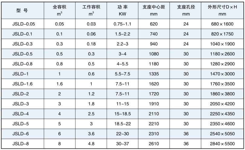 | ◆JSLD型锥形螺带混合机技术参数 |